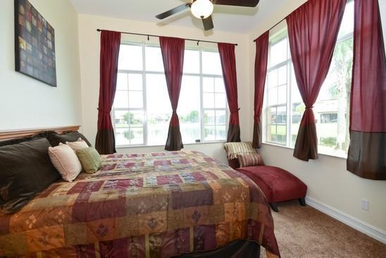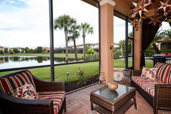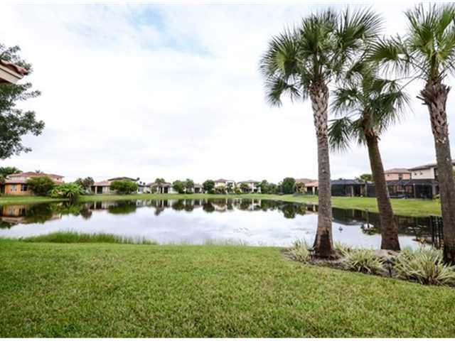 SPECTACULAR MOVE IN READY 4 BEDROOMS PLUS DEN/DINING/OFFICE SITUATED ON WIDE LAKE WITH BREATH TAKING VIEWS FROM ENTIRE BACK ROOMS AND SCREENED PATIO.FRESHLY PAINTED INTERIOR AND EXTERIOR IN TODAY'S POPULAR COLORS. TILE ON A DIAGONAL IN LIVING AREAS, NEW CARPET IN BEDROOMS,FANS,ALARM, TV IN,PREWIRED FOR SOUND,AND A HOME WARRANTY! KITCHEN UPGRADED WITH STONE MOSAIC BACKSPLASH,WORK ISLAND,GRANITE,STAINLESS APPLIANCES.GUARD GATED,2 CLUBHOUSES AND ALL WITHIN THE TOP RATED SCHOOL AREA.GREAT SUNSETS! RARE FIND