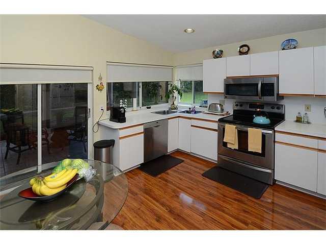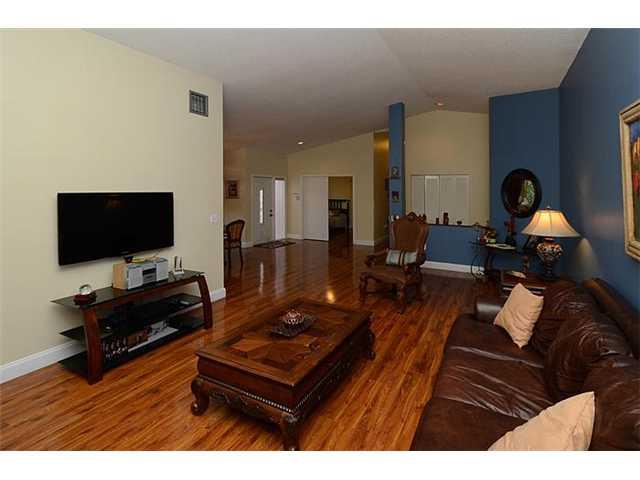 Owners maintained home to perfection! Warm and inviting 3 bedrooms and 2 bath/Laminated floors in Living areas in impeccable condition/Large master bedroom with French doors and view to back yard/Vaulted ceilings/2 car garage, driveway to maintain up to 4 cars/laundry tub in Garage/extended enclosed covered patio w/ceiling fan/paneled Hurricane shutters/Front yard maintained by association /Community pool overlooks gorgeous lake views/Walking distance to Pharmacy, Supermarket and Town Center / A must see.