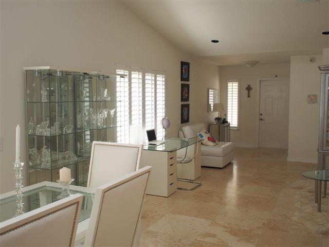This one is a Cream Puff. COMPLETE REMODEL. Gorgeous 24 inch Marble floors throughout living areas. Custom kitchen with 42 inch wood cabinetry, granite countertops and backsplash and stainless steel appliances. New Heated Pool with travertine decking, Ne w heater in Private fully fenced yard backing to No Neighbors. New Master bath with roman tub, dual sinks, granite & more. Plantation Shutters, Decorators touches everywhere. Shows light and bright. Security system, Walk to community pool, playground