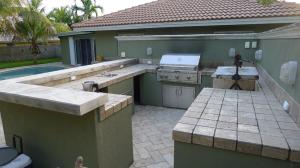 Gorgeous completely renovated, New kitchen, SS appliances including wine cooler, Granite countertops & backsplash Hi Hats new molding, Walk in closet (9x7) with California closet organizer 18 ' Tile and bamboo hardwood flooring and laminate throughout, no carpeting. Impact resistant garage door.Ranch style pool home, with fully equipped outdoor summer kitchen,fire pit, and private pool. Two years new barrel tile roof, and Brand new central a/c system with return vents in all rooms. Florida living in style, in A rated school districts, close to Beaches and Mall will not last. Measurement's are approximate and not warranted.