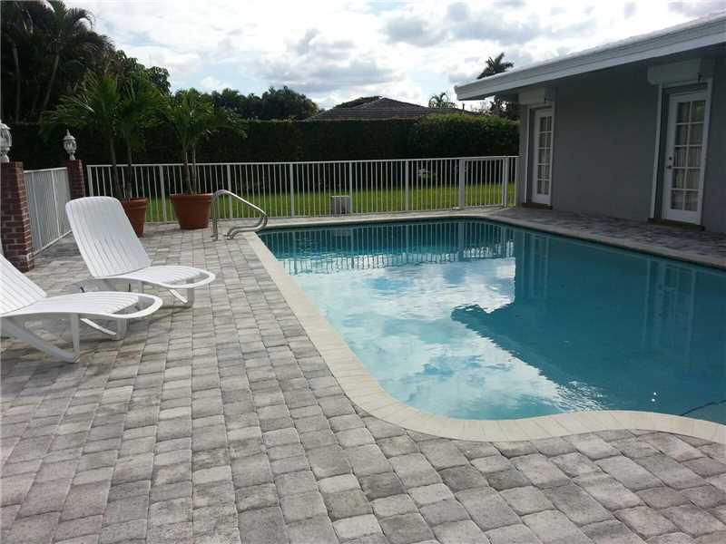 Custom home on large almost 1/2 acre lot. Features side entry garage, large paver tiled parking area, entry porch,formal living and dining area, custom kitchen with family room area, high ceilings, wood parquet floors,french doors, open pool with paver ti le surround and large covered porch, new roof, new AC. South wing has master bedroom and bath, 2nd bedroom, hall bath and huge library. North wing has 2 bedrooms and laundry room. Ideal split floor plan.