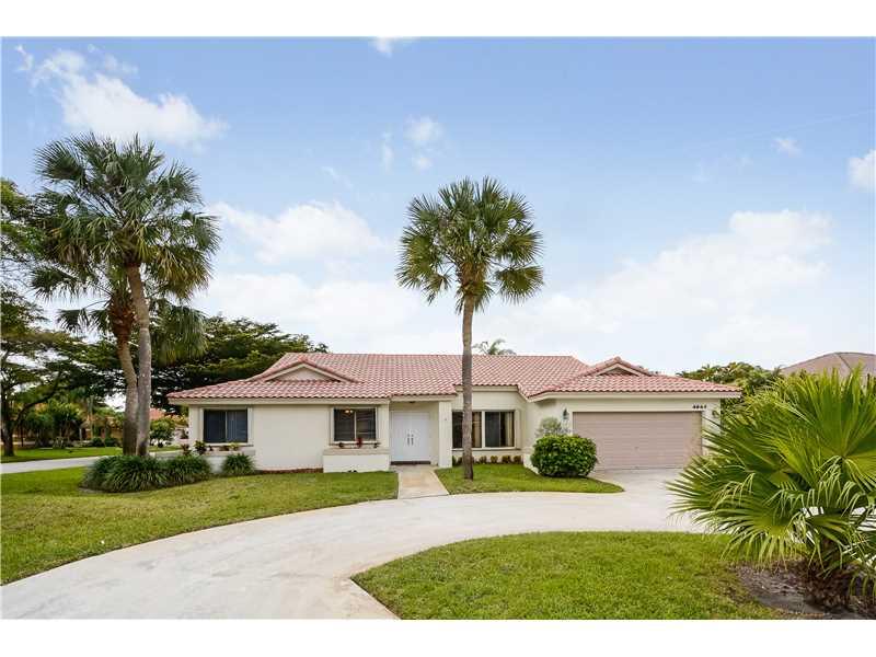Immaculate 4 Bed, 2 Bath pool home situated on a corner lot with a circular driveway. Roof replaced in 2006. Spacious, bright & airy layout with volume ceilings and recessed lighting. Eat-In kitchen with Stainless appliances (2011). Formal living & dining room. Family room overlooking the pool/patio. Large master bedroom with walk-in closet. Laundry room. Water heater(2015); Hurricane impact garage door(2011); Accordion shutters; Great for entertaining! Low HOA Fees. "A" rated school. A Must See!