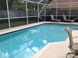Magnificent oversized corner lot and luxurious inground pool are just the beginning of how impressive this home is. Open large living room and dining room, light and bright leading into a georgeous upgraded kitchen with granite counters and stainless steel appliances. The kitchen lighting has been upgraded to inset LED lights for high efficiency. High quality wood laminate floors throughout the house. The bathrooms upstairs have been completely remodeled with granite counters, new plumbing fixtures, new lights, and tile. The home had custom painting done in 2012. New water heater in 2011, new AC in 2013. Accordian hurricane shutters in 2006 for the whole house, except the small transom window above the front door. No Country Club membership required.