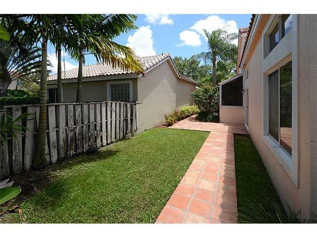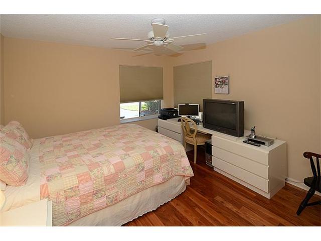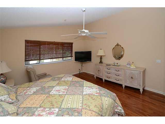 Spacious and well designed 3 bedroom, 2 bath one story home with large kitchen, breakfast nook and family room.Formal Living and Dining has volume ceilings,wood floors and views of side and rear yard.Expansive master bedroom.Master Bath with roman tub,enc losed shower and dual sinks.All bedrooms have wood floors. Back has spacious screened and tiled patio.Barrel Tile Roof 2007. Utility room w/ washer and dryer. Maintenance includes 24 hour guard gate, lawn maintenance,sprinkler system and pool maintenance.