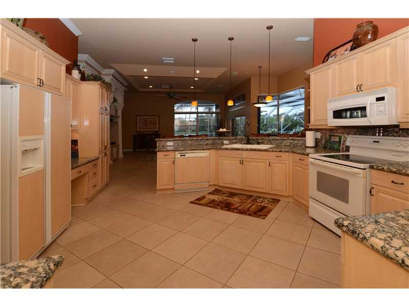Acre lot on lake. 5 bedroom plus office/den with 3 car garage. Central vacuum, upgraded lighting throughout, granite countertops in kitchen & all neutral crown moldings. Custom heated pool and spa. Tiki hut. 2 a/c units equipped with ultra violet to prev ent mold... Also solar panel on roof & accordion shutters.