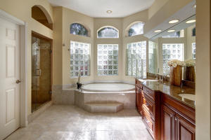 This spectacular lakefront home is situated on an over sized pie shaped lot with incredible views. A resort style pool and ample grassy back yard space make this home a rarity. This Palm Beacher model is on one of the best lots and includes many upgrades. It features a bright updated kitchen with custom light wood cabinetry, stainless steel appliances, thick granite countertops and double ovens. The large master suite has Californian closet space and the bathroom has dual sinks with granite counter, double showers and a separate jacuzzi tub. This is a true split floor plan with high volume ceilings. For convenience, a laundry chute was designed from the second floor to the laundry room, which has a commercial grade washer.