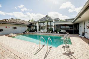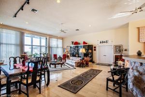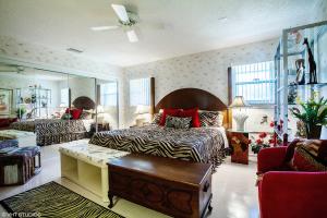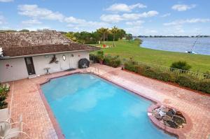 Spectacular 5 BR/ 4 BA home with a breathtaking view of Lake Mangonia. This home's bedrooms are separated by an east & west wing for plenty of privacy. The great room has 12 ft. ceilings,& has an upper level great for a special dining area. The gourmet kitchen has a large island, plenty of cabinet space, & has 2 pass-thru windows leading to the great room & the enclosed patio. The private patio is great for entertaining, with built-in space for a mini fridge & a microwave. Highlight features are a large swimming pool, 2 master baths with a Jack & Jill shower, Jacuzzi tub in the master bath, stone walls in foyer & LR, central vacuum, circular drive-way, 2-car garage, accordion shutters complete this home in this gated community close to the Palm Beach Outlet Mall and Palm Beach Airport.