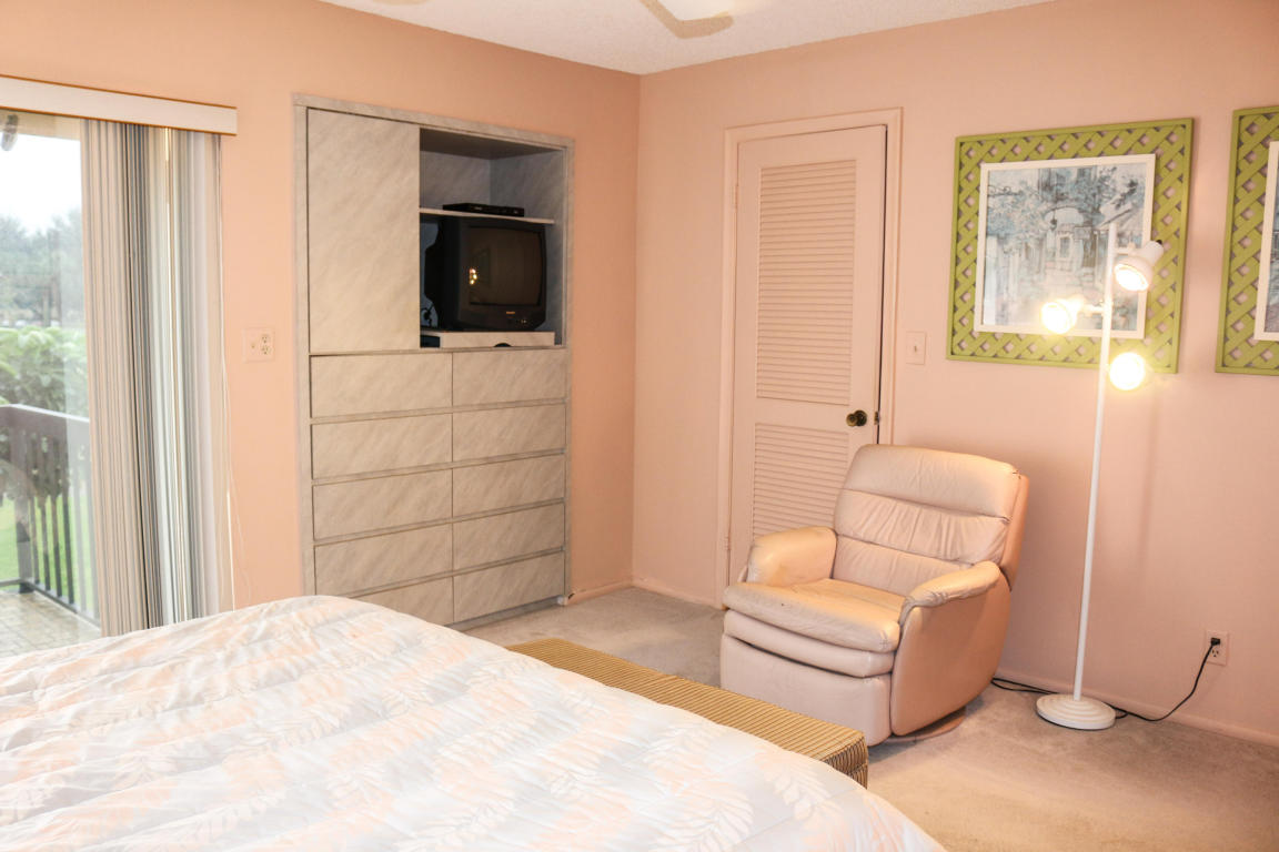 Rare 3 bedroom/3 bathroom corner townhouse with a master bedroom and bath downstairs.You enter street level. The only steps go to 2nd floor where there are 2 bedrooms. Breakfast eat in area in kitchen. Well kept, clean unit. Motivated sellers. Great space. Patio very private off dining area. Peaceful golf view. Membership equity required.