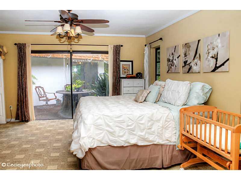 Unique. Intriguing. Great family home in highly desirable gated community. This home was designed with large lot and tropical views in mind. Many floor to ceiling windows and sliding doors create an abundance of natural light. Feels like you are livin g amongst the trees and plants in a tropical environment. Large open kitchen has newer cabinets, granite counter tops and stainless steel appliances. Beautiful warm wood flooring in living areas and carpeting in bedrooms. Den. Large patio & more.