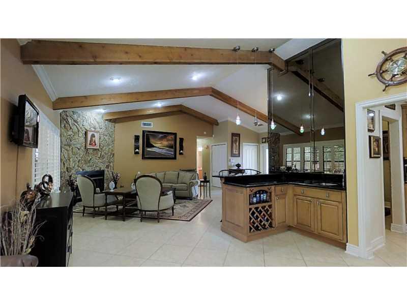 Enjoy the Florida lifestyle in this exquisite home with the finest in finishes & designs. An open floor plan offers a spacious & comfortable living area, formal dining fireplace with decorative stone to the ceiling. Vaulted ceilings with decorative beams complimented by plantation shutters in the living areas. Custom kitchen cabinetry with stainless steel appliance package & wine refrigerator. Granite countertops complete the space, along with an expansive pantry. Oversized screen enclosed patio.