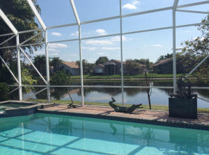 Open , bright , spacious,great for entertaining, house at Shores, Boca's most desirable gated communities.The great room and adjoining breakfast area, living room and master bedroom suite all open onto an over-sized, screened-in lakefront patio with a solar heated 34' pool and cabana bath. Enjoy new SS appliances , granite surfaces in the bathrooms, new contemporary lighting fixtures and freshly painted throughout, new flooring in powder room, Hunter Douglas window treatments, and much more. 4th BDR converted into a library/office with custom built-in shelving and desk.Enjoy the security of electrically operated hurricane shutters. Beautiful clubhouse with swimming pool,workout room,kids club. Shores provides a fully equipped gym, tennis and basketball court.Low HOA