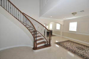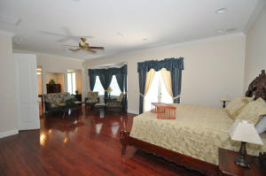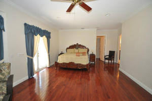 Spectacular two story home in Rustic Lakes gated community. Beautifully landscaped 2.5 cleared acres w/pond. Paved road leads up to custom circular driveway. Hardwood & ceramic tile(no carpeting!) 14' ceilings, stainless steel package, granite counter tops, custom 42'' cabinets,etched glass fronts. Kitchen island has service sink & cabinet space. French doors throughout. Circular staircase to bedrooms & office. Master has built-in cabinets in closets. Bath is unique, his and hers bath areas,separate shower, Jacuzzi, and butlers pantry w/small refrig, microwave,granite countertops and plenty of storage. All cabinets throughout the house match! Home is wired for home media entertainment, intercom/radio. Water system extensive system w/osmosis system. The neighborhood,close in to PBG,TP &I-