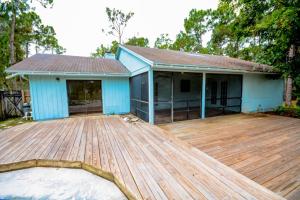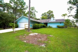 A BEAUTIFUL 3 Bedroom, 2 Bath, Pool Home on 1.16 acres located in The Acreage! The exterior of the home features a luscious green landscape with Updated Exterior Paint and Brand New Wood Deck that surrounds the Personal In-Ground Pool. Upon entry to the interior, you will notice that this home is designed with a Split Bedroom floor plan with a brand new coat of interior paint and GORGEOUS brick-color Clay Tile throughout. The large Living Room features a STUNNING stone-built Wood Burning Fire Place and opens up to the Dining Room and Kitchen. The Kitchen is Galley Style, set up with a great cabinet system that offers plenty of space for storage. The Master Bedroom has a Walk-In Closet with installed storage racks, an in-suite Bathroom, and includes a SPECTACULAR view of the Pool and Back