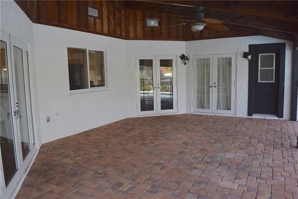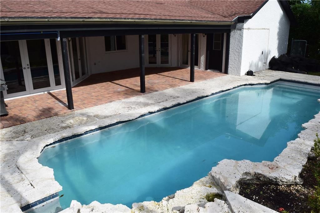 Beautiful, remodeled Jacaranda pool home with open floor, vaulted ceilings, crown molding throughout, new hardwood floors, new baseboards & hurricane windows & doors. This amazing house features remodeled kitchen w/granite countertops, new wood cabinets, S/S appliances & wine chiller. Home also features a real working brick fire place, large covered patio with pavers, French doors, Plantation shutters, & coral rock pool deck. Outdoor patio features BBQ area & offers a long lake view. A must see!