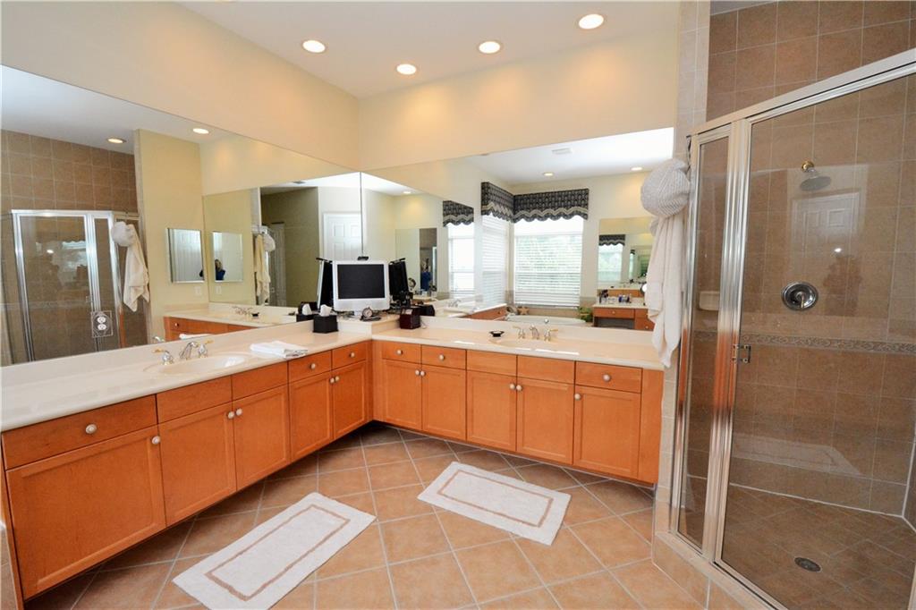 ONE OF THE LARGEST HOMES IN THIS GORGEOUS RESORT-STYLE COMMUNITY. HOME HAS ONE OF THE BEST LAKE VIEWS AVAILABLE. COMPLETELY UPGRADED KITCHEN W/SS APPL, LG CTR ISLAND, RICH REAL-WOOD CABINETRY, GRANITE COUNTERTOPS & LARGE BREAKFAST AREA. HUGE MASTER BEDROOM OVERLOOKS THE LAKE W/LARGE BALCONY. 2 WALK-IN CLOSETS WITH CUSTOM CABINETRY, AND A LUXURY SPA BATH. THE BACKYARD FEELS LIKE VACATION WITH THE LARGE AWNINGS, COVERED SITTING AREA, LUSH LANDSCAPING & ROCK WATERFALL INTO POOL WITH MILE WIDE LAKE VIEWS.