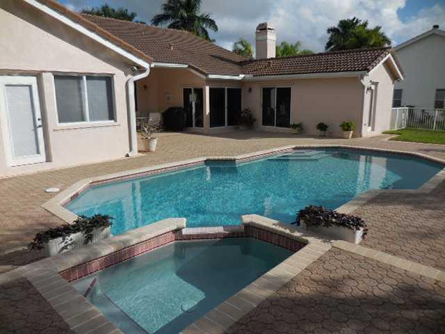 Light Bright & Open Custom 5 Bedroom Cambridge-Huge Set Back Pool & Spa On Oversized One Third Acre Lakefront Lot-Mammoth Pool Patio-Limited Traffic Cul De Sac-2008 Stevenson Roof-5th Bdrm Well Placed Guest/Office/Gym W/Private Full Bath & Entrance Off Cu t Coral Fireplace Family Room-Improvements:'07 Fence-'14 West Side A/C-Kitchen Updated W/Granite/Doors & Pulls/Appliances-20x20 Tiling-'13 Diamond Brite/Elec Pool Heater/Water Heater-Panel Storm Covers-Home Sold "As Is" With The Right To Inspect