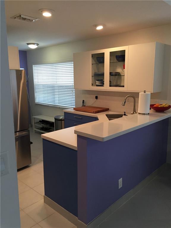 Contemporary beauty in move in condition. Newly remodeled chef's dream kitchen with higher end stainless steel appliances and quartz counter tops. Recently remodeled second bathroom. Master bathroom boasts newer floor and wall tiles, modern shower enclosu re and his and hers sinks. Large floor tiles thru main traffic areas. New washer, dryer and hot water heater. The exterior of the home was freshly painted last year. Split bedroom plan offers privacy. Accordion storm shutters. Short walk to community pool