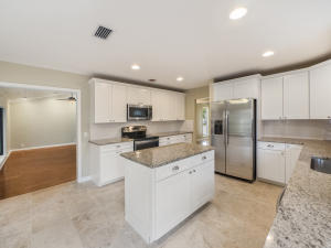 Newly updated 3 BR 2.5 BA home located in the desirable Frenchmen's Landing community. Upgrades include new cabinetry, granite countertops and stainless steel appliances in the kitchen, remodeled guest and master bathrooms and travertine flooring throughout the kitchen, guest bathrooms and hallways. The glass sliders lead to a huge covered patio area that creates an extension of the interior living area. Frenchmen's Landing is a relatively small and cozy subdivision that is situated close to all that Palm Beach Gardens has to offer. Also close to I-95, Florida's Turnpike and beaches. Low HOA fees. A gem in Palm Beach Gardens, will go fast!