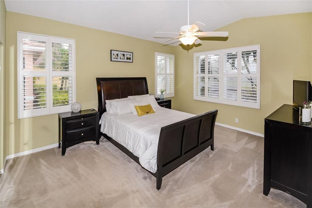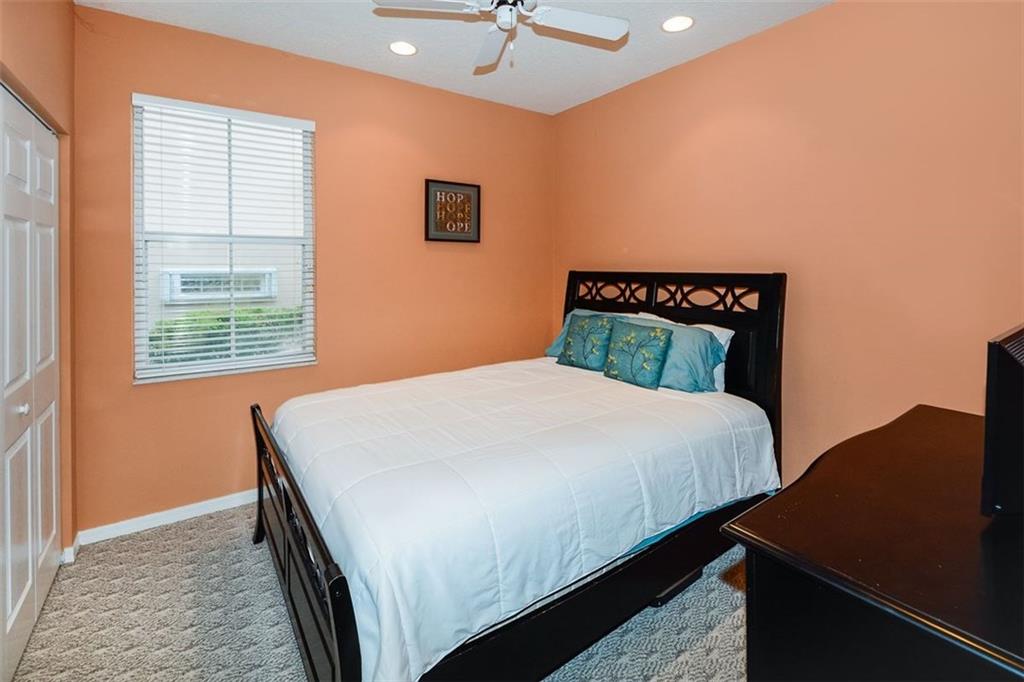 Beautiful 4 bed, 2 bath, 2 car garage home in the quiet, gated community of Coventry Cove at Wyndham Lakes. This home feat: brand new 20 seer A/C, carpets in bedrooms, tiled through-out living areas, Stainless Steel appliances, recessed lighting, large walk in closet in master, plantation shutters, volume ceilings, screened-in patio w/fantastic water views, heated hot tub & accordion shutters. Low maintenance fees. Property priced below appraised value for a quick sale. 4th bedroom doesn't have closet.