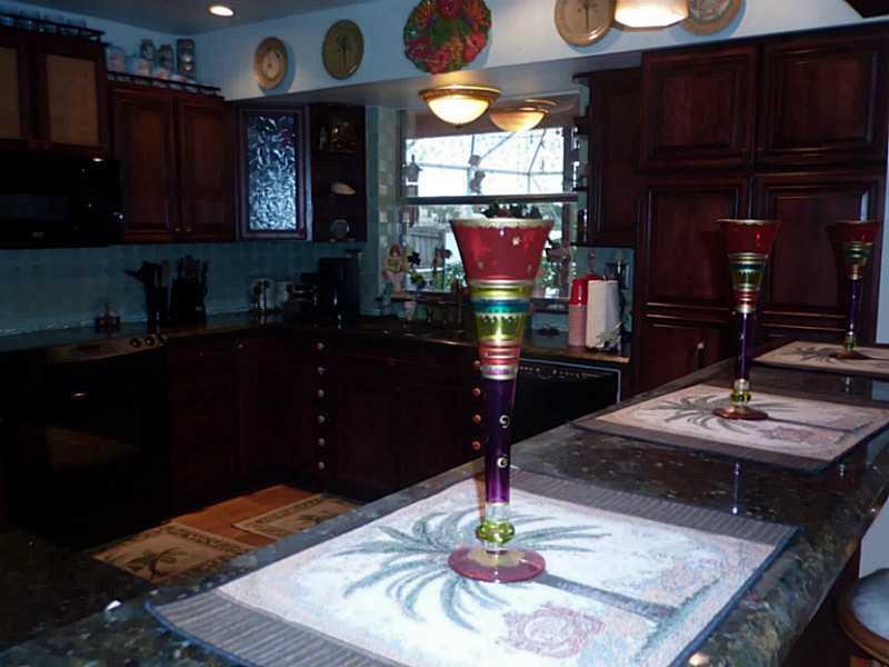 Must see to appreciate. Owners have done extensive remodeling in this lakefront home. Opened floor plan between new kitchen (Mahogany wood cabinets, granite counters & breakfast bar, glass tile back splash, even refrigerator covered to match cabinets), di ning & living area, all with cozy laminate flooring. Great master-suite, w marble & granite en suite & water views from two sets of French doors. 2nd private split master -French doors to pool. Extended dock on wide part of lake. Feels like a vacation!