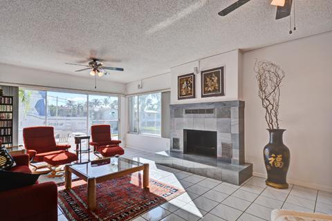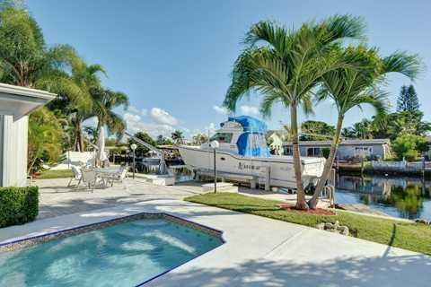 Beautifully Updated and Preserved home on a wide water/ocean access canal. This Stunning home is upgraded with a modern marble wood burning fireplace, updated bathrooms and top of the line stainless steel appliances. New Dock, New Seawall, 20,000 lbs boa tlift and 5,000 lbs Davits make for a carefree boaters paradise!! The pool, large paver patio, lush landscape and serene views of the water create for perfect outdoor living!!! Welcome to Paradise!!