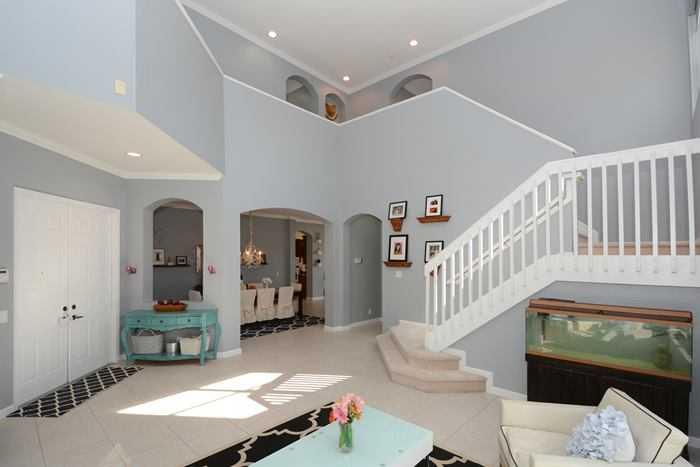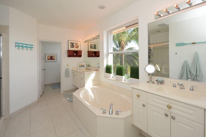 Enjoy private & expansive lake views in this chic waterfront home. Goregous, freshly painted 6 bed/4 bath home has a newly renovated kitchen w/real wood cabinetry, Corian counters, wine fridge, brand-new Bosch SS DW. Master suite w/stunning views located upstairs; 1 bed/1 full bath on 1st floor can be den/playroom/bedrm. Complete w/efficiency lighting, accordian shutters upstairs, relaxing heated pool w/spa, & child safety gate. Prvt guest en suite upstairs, 3 car gar, new gutters. It will sell fast!