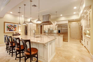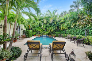Experience the epitome of luxurious in-town living. Located on the Ocean block of Peruvian Avenue, this home, originally built in 1997, was totally renovated and reconfigured in 2011. A soaring two story entry welcomes you to marble covered floors that glisten from the natural light beaming through impact windows and French doors. A large gourmet kitchen, loaded with every amenity available, awaits a large gathering of family and friends. The wrought iron spiral staircase winds its way from the foyer to the second floor where you will find a massive master suite complete with his and her closets and a fabulous master bath, a library with custom built bookcases and a wet bar, 2 additional bedrooms with en suite baths, and a large open balcony overlooking the lushly landscaped grounds.