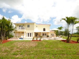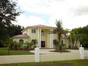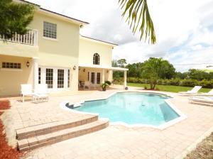 Enjoy TROPICAL LUXURY at this amazing Acreage Estate Home! One of the most impressive homes, in one of the best locations in the Acreage, with view of the Bay Hill golf course! Five spacious bedrooms plus office, 3 1/2 baths. This newer CBS home has just been completely renovated and upgraded. Travertine floors, all wood kitchen cabinets w/ soft close doors, new LG appliances, beautiful granite...w/ all new fixtures and finishes. Gorgeous heated pool w/ LED lights. Huge master w/ private balcony w/ beautiful view of the pool area and golf course. Circular drive and large concrete pad for RV or boat. The property is surrounded by a cbs wall on all 4 sides and has 2 large entry gates. This house, under $500k, is an amazing value!