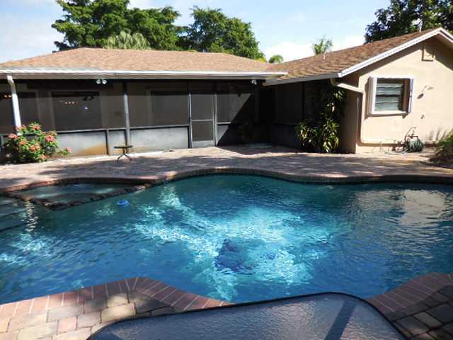 Fabulous Condition Ambassador Model on Over One/Third Acre Fully Fenced Lot-50 Foot Outside Paver Patio Surrounds Lushly Landscaped Free Form Pool With Electric Heater-Heater 2012-14 Accordion Shutters & 1 Roll Up 2011-A/C 2010-Garage Door 2008-Both Baths Updated, Master In 2014-Master Includes Shower & Spa Tub-Granite/Wood Kitchen-Roof 2005-Electric Pool Heater-Home Sold "As Is" With The Right To Inspect