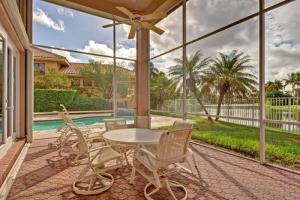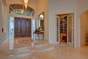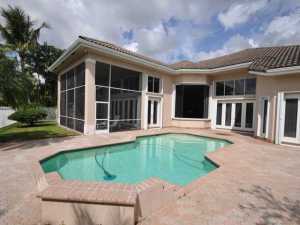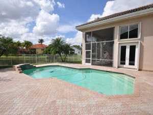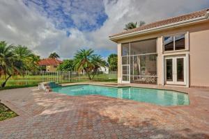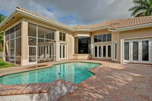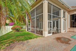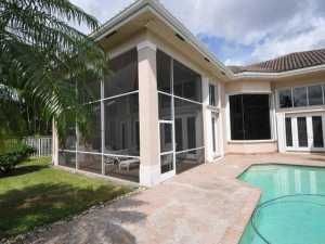 Fox Landing a gated community in the city limits of Boca Raton, Lake front estate home with 5 Bedrooms, 3.5 baths and 3 car garage. Marble thru out except for bedrooms; split bedroom plan, updated kitchen with granite counter tops, full back splash and under counter lighting; French doors thru out, accordion shutter; All Natural gas house generator,hot water heater and built in summer kitchen. Hurricane Garage doors. Dining room with built-in lighted bar area. all interior walls fully insulated for sound. Garage with built in storage closet. Open pool and screened patio with beautiful lake views.