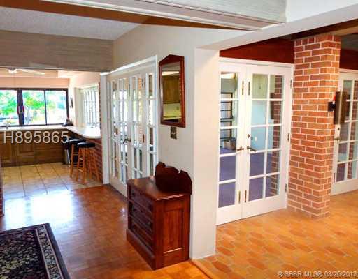 Waterfront! Desirable oceanside community.Just one fixed bridge.Foyer entry,lg family room with area off kitchen for formal or informal dining,large living room with separate area for office,French doors lead to waterfront Florida Room.Master Suite has 2 large walk in closets,3 other bedrooms share 2 baths on other side of home.Big laundry/utility room.Pool has recent heater.Home has newer gas generator. This property to be conveyed AsIs.Home, seawall,and dock repairs are needed.Walk to Beach.