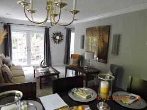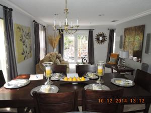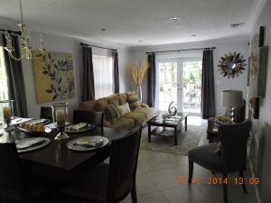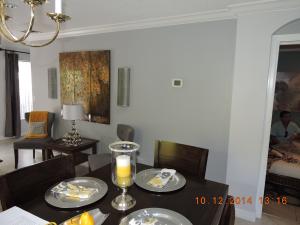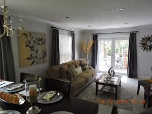 This 3 Bed,2.5 Bath two story home has pride in ownership throughout with tiled main floors, carpeted stairways, tiled upstairs hallway, wood floors in all bedrooms and crown molding from the first floor to the hallway.Updated kitchen, with a garage conversion to create additional living space. Dining/living room has recessed lighting and faces the fenced in back yard. Kitchen has small breakfast nook with ceramic tile countertops and wood cabinets. Back yard faces canal for more privacy. Home has tank less water heater and burglar alarm system.