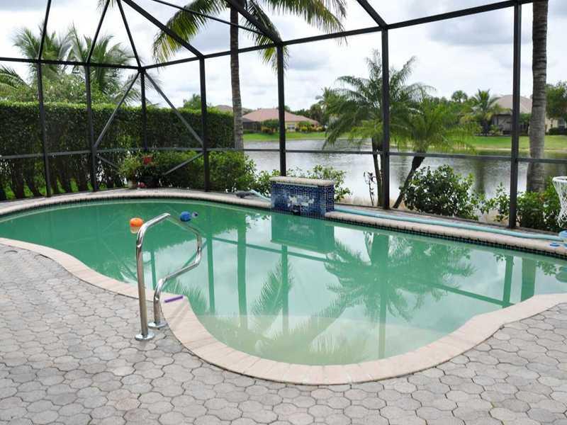 PARKLAND ISLES HOME!! One of Parkland's best value. This great pool home is located on a wide waterfront lot within a private cul-de-sac. It is bright and sunny with awesome views of the lake and pool area. Offering included Plantation Shutters, Large neu tral tile throughout, White Kitchen Cabinets, Laminate flooring in Bedrooms etc. Elementary School will be Parkrtrails or Heron Heights.