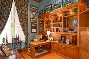 This stunning custom home built by PGM Developers offers many ''Casual But Elegant'' upgrades and wonderful curb appeal! This gorgeous home on the Legend 4th hole features three over-sized bedrooms plus den with 4.2 baths including ''his and hers'' off the master bedroom. Upgrades include ceilings with stunning architectural detailing, triple trey ceilings, marble floors, bamboo flooring in den, decorative gas fireplace, custom lighting and crown molding. Family Room den and formal dining room feature custom built-ins. In addition, home has quality custom doors, built-in wine rack and beautiful front entry double-doors with iron works. This beautiful interior is finished off by an equally gorgeous private lot with water/golf views.