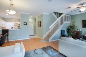 Walk to your community pool from this spacious townhouse with private backyard, 1 car garage AND double driveway for 2 more vehicles. Crown molding and wood laminate flooring, along with aluminum shutters. A/C is only 3 years old, and new hot water heater installed 2/2014. Great school district!