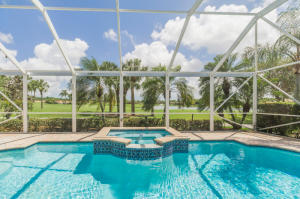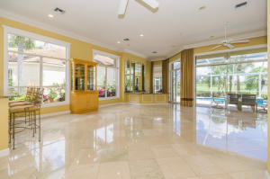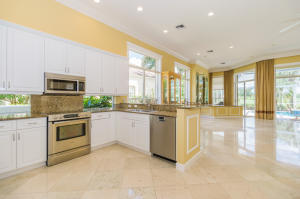 Extraordinary lake & golf views surround this wide-open, luxurious Belaire II "dream-house", located on the 5th Fairway of the Heritage course in the exclusive Ibis Golf & Country Club community. This bright & spacious home, located on a quiet cul-de-sac, will immediately wow you with its expansive interior and its top-to-bottom, wall-to-wall panoramic windows and sliders. High-end features include soaring volume ceilings with crown molding and recessed lighting, Italian marble flooring throughout, and a step-down wet bar. The gourmet kitchen has granite countertops, white cabinets, and stainless steel appliances. The huge master suite has patio access, dual built-in walk-in closets, and a resort-style master bath. The screened lanai has a sparkling pool & spa and an electronic awning.
