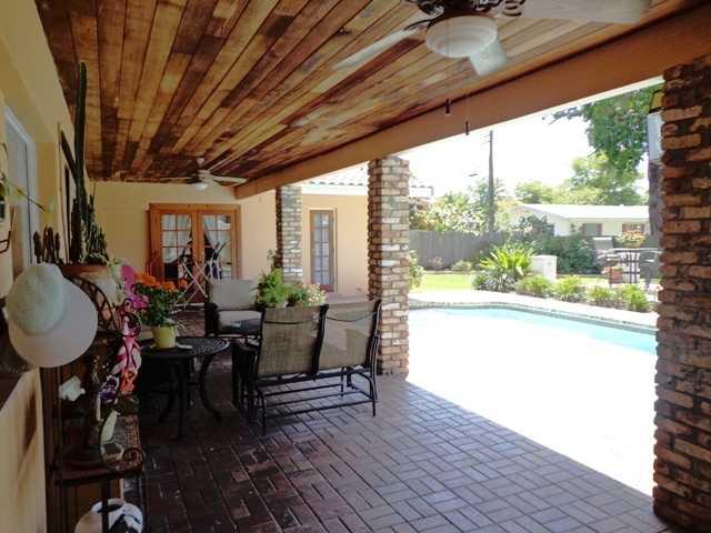 Spacious & lovely on oversized corner lot features 2007 wood, granite & stainless kitchen open to lg family rm w/ wide open views of pool, patio & lush yard. All custom baths redone 2012 include Koehler fixtures. High end laminate wood flrs throu-out, cr own molding, French drs, 2003 S-tile roof, 5 ton A/C, 2 zone sprinkler system, pool re-marcited 2012, large paver patio. 4th bed adjacent to master now a large walk-in closet that can be converted to 4th bed. Termite warranty. Superior schools.