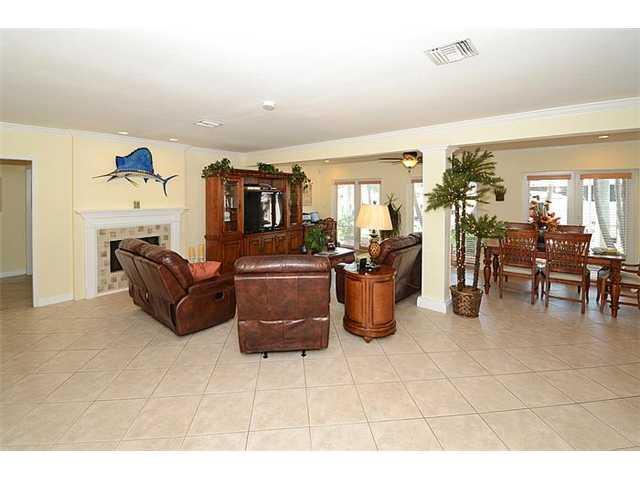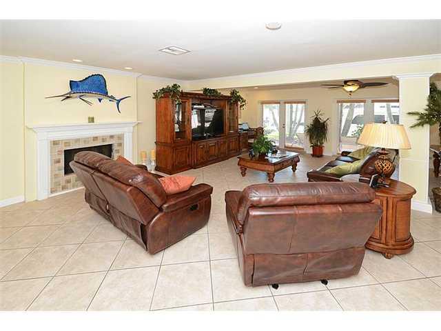 LIVE ON THE ISLES!This tastefully updated Tommy Bahamas style home has 85' of water frontage with new dock,hurricane impact doors and windows throughout, 2 new A/C's, new LG appliances and wood floors. The open floorplan with inviting fireplace and wrappi ng french doors with lots of natural light avails tranquil views of mature palms and waterway. The large master suite makes up the entire 2nd floor!Large sitting room/4th bedroom, and private balcony. Be sure to view the Virtual Tour and 4 Panoramas!!!
