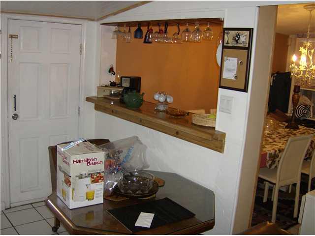 This home is a great starter home. It is being used as a 3 bedroom 1bath main area wit 2 1bedroom 1 bath efficiencies on each side of house. Lots of potential here. Roof approx 3 years old, driveway done in 2012, hurricane shuters on 3 windows the rest ar e panels. Owner says efficiencies were built over 30 years ago before she bought the home and does not know of any permits.