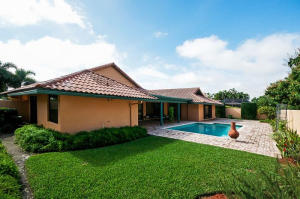 Extremely well maintained and immaculate 4/3 pool home on one of the most desirable streets in east Boca. This custom built home offers over 2,700 sq. feet of living space. The family room overlooks the pool area and has a fireplace with a gorgeous vaulted wood ceiling. The bedrooms are all good sizes and the house has a split bedroom floor plan. The main flooring is tiled throughout; solid wood doors; crown molding; formal separate living room and dining room; high hats; large indoor laundry room with tub;master bath with a roman tub; oversized two car garage. The outdoors offers meticulously maintained landscaping; pavered walkway and pool decking; large covered patio; open pool area and the backyard walled in for privacy.