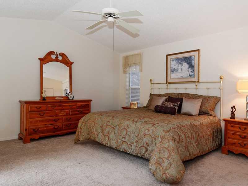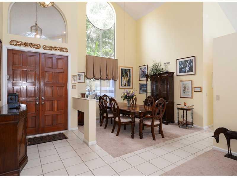 Priced to reflect TLC needed. Quiet, interior cul de sac on large corner lot with side load garage. True five bedroom, split floor plan with architectural interest throughout. Soaring cathedral ceilings, clerestory windows bringing in light and volume. Recently painted exterior, newer roof, pool pump just replaced & disposal. New carpet in master, living & dining rms. 24 hour guard gated community. Tennis & playground. Convenient to everything!