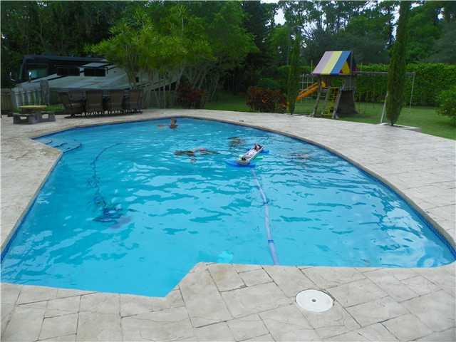 Located on over 1 acre with well and sprinkler system in Tamarron. Perfect home for a large family. Great room with fireplace, vaulted ceilings, living room and formal dining room. All new impact windows and slider door. 3 newer a/cs, 2 new water heaters , new refrigerator. Pool is a salt water filtering pool. The walk in attic can easily become another bedroom. Huge back yard, plenty of room for tennis or volleyball court. Schools are Waters Edge Elementary,Loggers Run Middle & West Boca Raton Comm HS