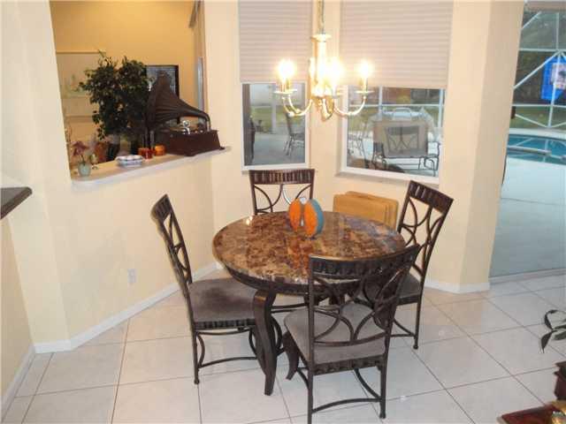 Lovely home located on a cul-de-sac lot in desirable, gated community! Outstanding upgrades and features include: grand, covered entry; neutral stone-look tile in all living areas & wood laminate in bedrooms; updated kitchen with white cabinets, granite c ountertops & stainless steel appliances; huge family room; split bedrooms; cabana bathroom; volume ceilings; large, screened pool & patio; accordion hurricane shutters; and more!