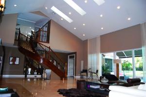 Move-in ready, stunning, spacious, 5 bedrooms/5 full baths open floor plan home with circular drive! This elegant, contemporary custom home boasts high ceilings, skylights and impact sliding glass doors that welcome in the large feel,open backyard with heated pool and spaall this in a gated, private enclave in central Boca!!! There's plenty of grassy area for kids to play, this property overlooks the Hillsboro Canal. The kitchen and all baths have been redone. Master plus 2 other bedrooms down, 2 bedrooms and double bath up. Newer roof, 2 zone AC, hardwood floor and 24x24 marble flooring. This is a wonderful home for entertaining with wet bar and wine fridge. Encantada is an all ages, pet friendly, gated community in the best Boca school district. One of the special 'stand-alone'
