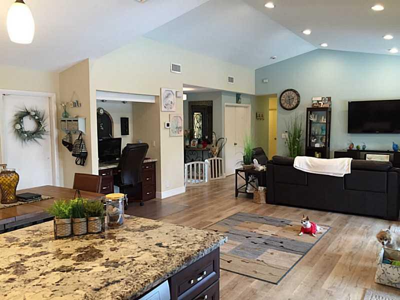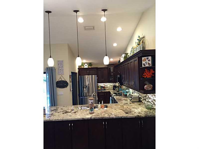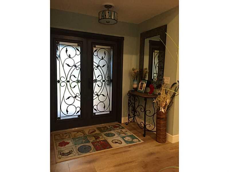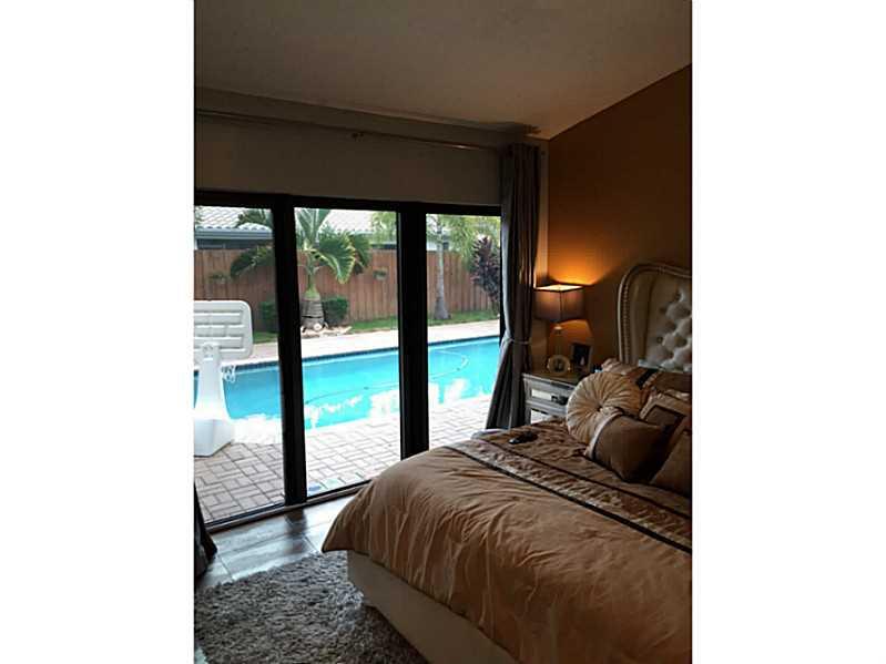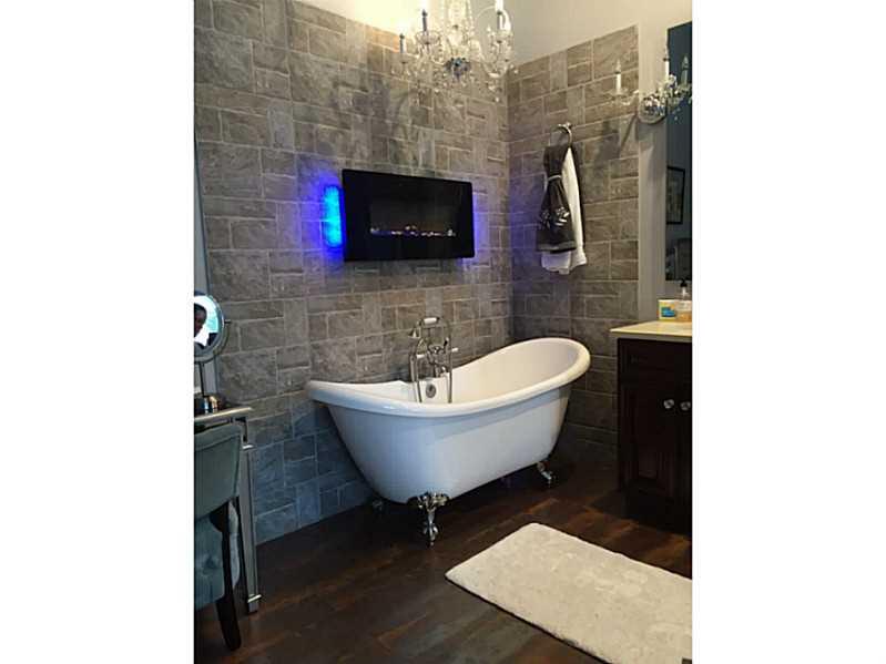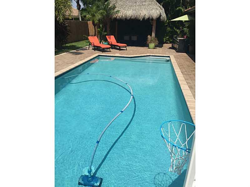 WOW... Remarkable and Completely remodeled home with no expenses spared! The kitchen is upgraded with wood cabinets, stainless appliances, granite counters. Beautiful wood floors throughout the home with a new roof, impact hurricane windows & custom impor ted front door. The master suite is a sanctuary with a custom shower, claw foot soaking tub & a built-in luxury TV in the mirror to view from bed. The back yard is fenced and is very private with a tiki patio fully wired over looking the pool..plus more