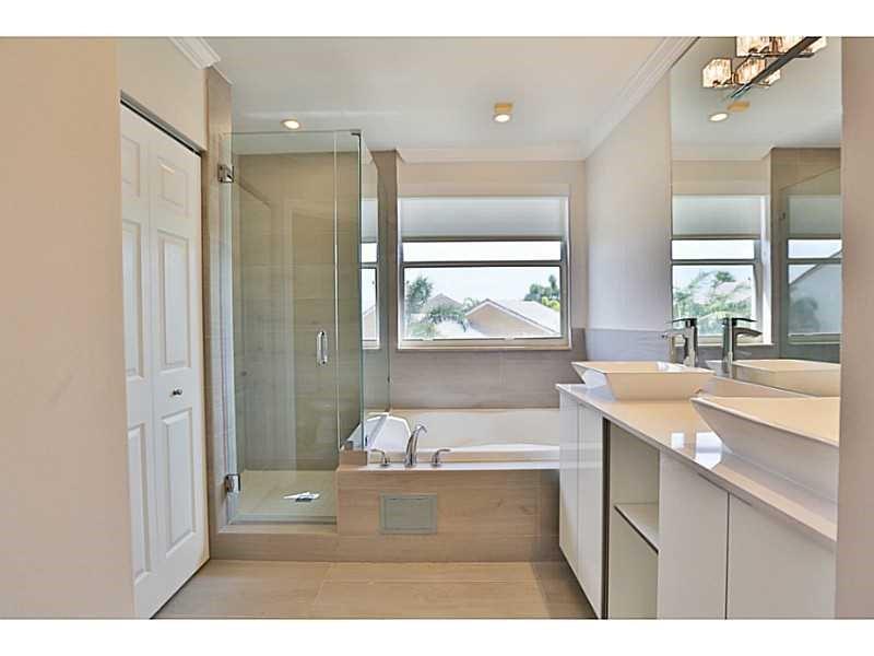 Property professionally remodeled with quality materials and great taste, large format polished porcelain tile first floor, European kitchen cabinets, ice white brand new Kitchen appliances, quartz countertops, real wood modern profile all millwork, LE D recessed lights throughout, concrete Pavers patio, European chrome bathroom fixtures, premium porcelain tile and glass mosaics in bathrooms & smooth ceilings.