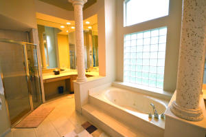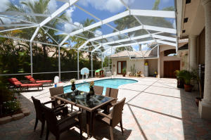 From the time you walk up to the solid mahogany double door entry into the courtyard of this home you feel like you are in a resort. Amazing outdoor living with access to a full guest house & every room of the main house. Family room & breakfast area have custom built ins to add to the natural comforts. Home features a Split bedroom plan with every room possessing its own in suite bathroom, large master suite with 2 walk in closets, 3 car garage, accordion shutters, newer pool heater, 3 zone a/c, 2 zone water heater, stainless appliances, salt water pool & a yard with enough room for the kids to play or walk the dog. Community features 24 hour guard gated entries, community pool, clubhouse, exercise room, basketball, tennis & more. This home is zoned for all ''A'' rated public schools.