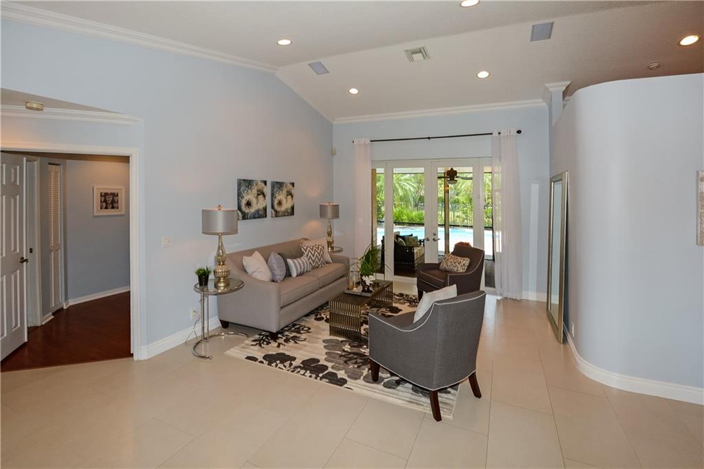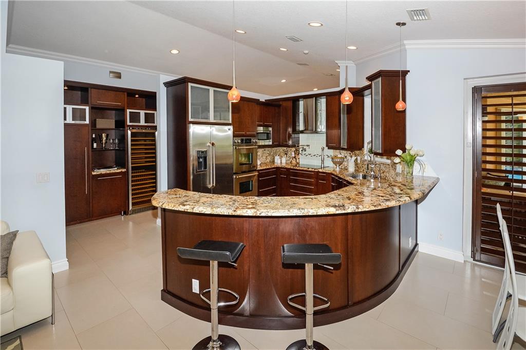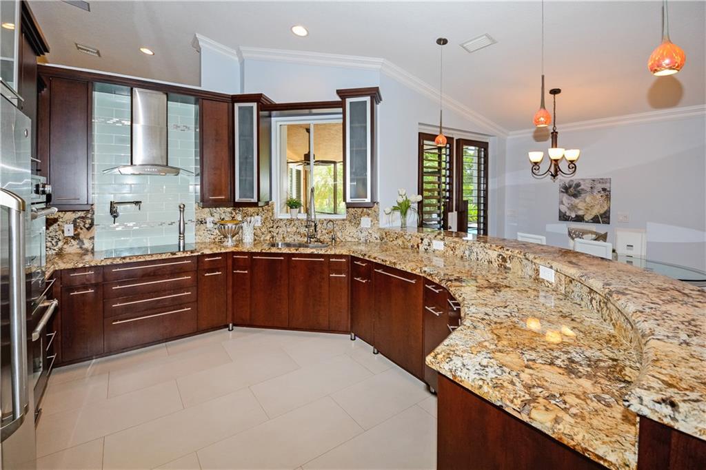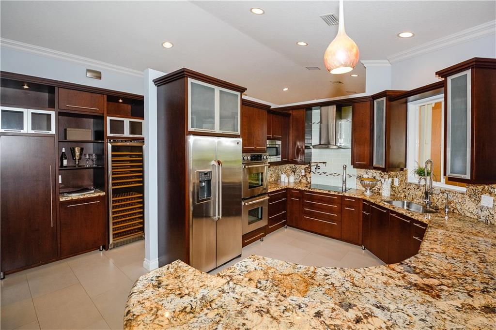 EXCEPTIONAL ONE-OF-A KIND RESIDENCE NESTLED ON A FABULOUS CUL-DE-SAC & PIE SHAPED WATERFRONT LOT! ENTER THRU THE CUSTOM WOOD DOORS INTO A GRAND FOYER. FABULOUS UPDATED KITCHEN, GRANITE COUNTERS, BEAUTIFUL 42” WOOD CABINETS, STAINLESS STEEL APPLIANCES WITH POT-FILLER OVER THE RANGE. SEPARATE UNIQUE WINE BAR, ALL BATHS HAVE BEEN UPDATED, OPEN SPACIOUS LIVING AREAS & LARGE LAUNDRY ROOM. FRENCH DOORS LEAD TO COVERED PATIO, OPEN CUSTOM POOL WITH CHILD SAFETY NET, ACCORDION SHUTTERS. A TRUE GEM!!