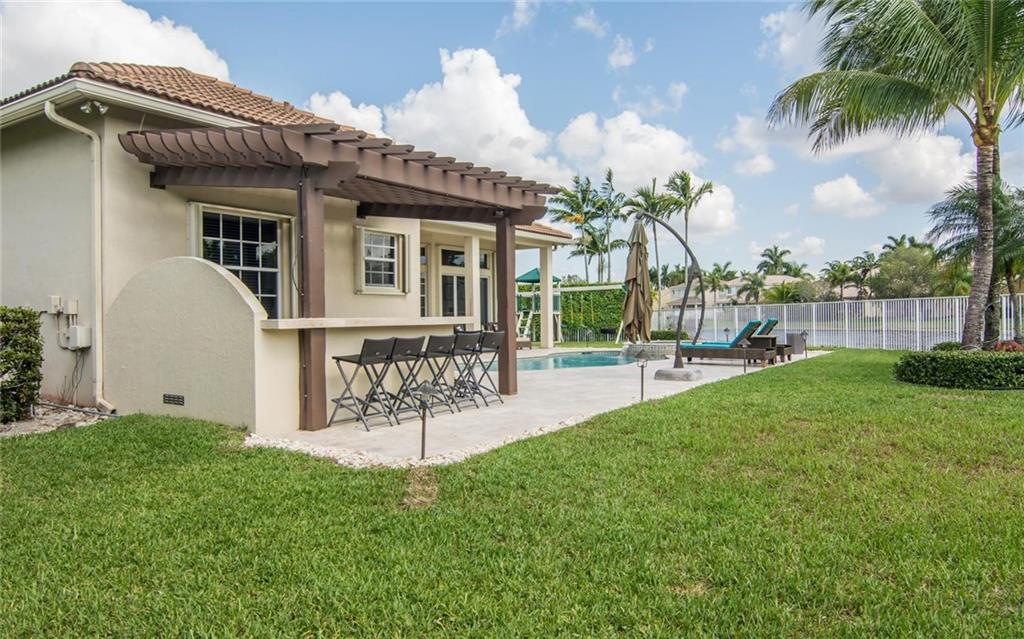 LOOKING FOR A SPECIAL HOME! THIS IS IT! OVERSIZED CUL DE SAC LOT WITH VERY NICE LAKE VIEWS. GREAT BACKYARD EXPOSURE. OUTDOOR LIVING AS ITS BEST WITH OVERSIZED PATIO, AUTOMATIC MOSQUITO SPRAY SYSTEM, SUMMER KITCHEN, STONE MARBLE FLOORS, HEATED POOL & SPA! 4 BEDROOMS + DEN WITH 3.5 BATHS. RECENTLY RENOVATED WITH NEW KITCHEN, QUARTZ TOPS, STAINLESS STEEL APPLIANCES, NEW BATHS, LAMINATE WOOD FLOORS IN KIDS BEDROOMS, CALIFORNIA CLOSETS, ACCORDION SHUTTERS, POOL RECENTLY RESURFACE , AC UNITS PLACED IN 2010