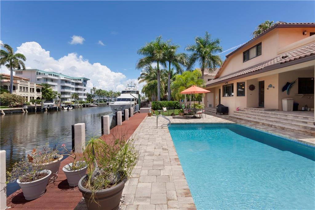 Designed for relaxed indoor/outdoor living, this Modern Mediterranean estate stands on the Rio Cervantes Waterway and includes yacht dockage with a lift. Tropical gardens and clean architectural lines give a beautiful first impression. Volume ceilings heighten the sense of space in the free-flowing interiors that lead out to the waterside lanai, stepping down to the sun-splashed pool patio. Famous Las Olas Boulevard’s shops and restaurants are within walking distance, and the beach is close by.